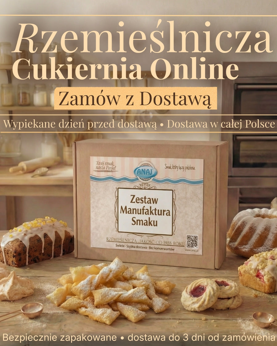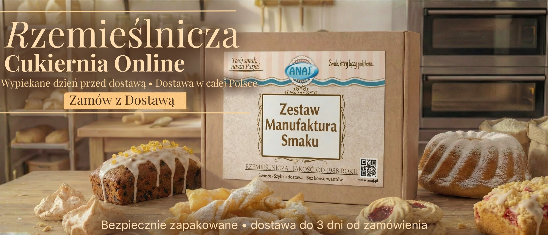 Każde zamówienie pakujemy ręcznie, w solidne kartony, z użyciem specjalnie dobranych wypełniaczy, które stabilizują wypieki i chronią je podczas transportu.